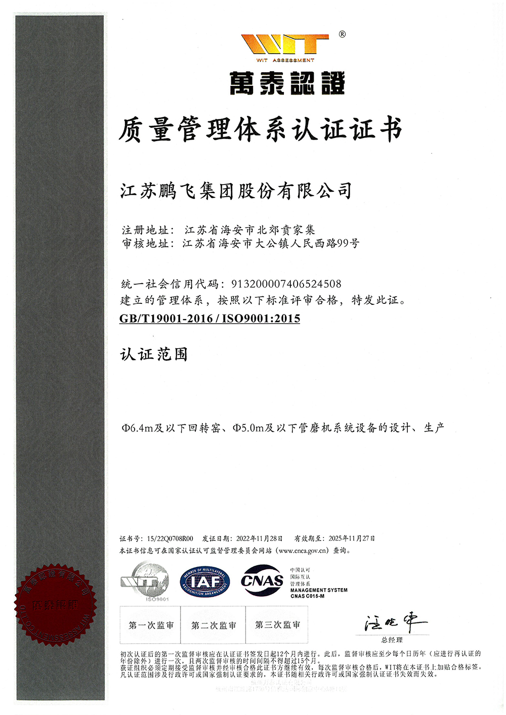 (2022年11月)質量管理體系認證證書