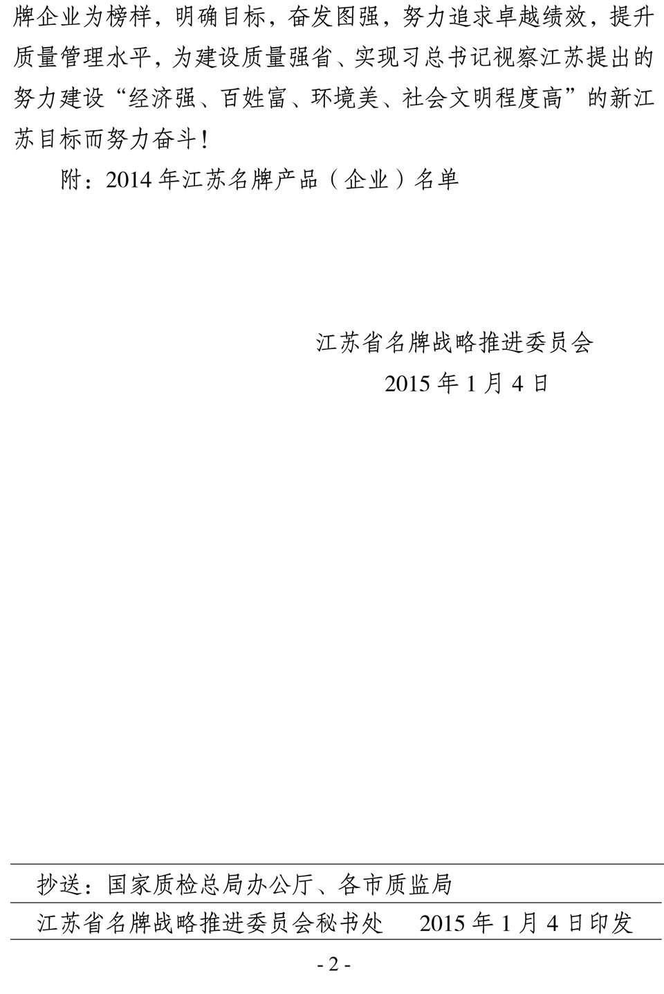 日前,江蘇省名牌戰略推進委員會公布了2014年江蘇省名牌產品名單,“