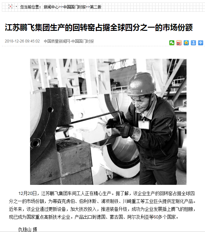 12月20日,江蘇鵬飛集團車間工人正在精心生產。據了解,該企業生產的回轉窯占據全球四分之一的市場份額,為蒂森克虜伯、伯利休斯、浦項制鐵、川崎重工等工業巨頭提供定制化產品。近年來,該企業通過更新設備,加大技改投入,推進裝備升級,成功為企業發展插上騰飛的翅膀,現已成為國家重點高新技術企業。產品出口到德國、蒙古國、阿爾及利亞等60多個國家。