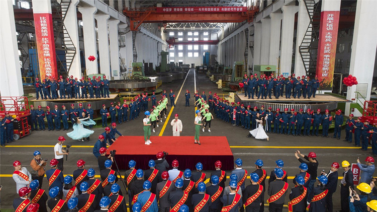 五一前夕,鵬飛集團的王家安勞模創新工作室獲得了“全國工人先鋒號”稱號。這個創建于2007年的工作室,由全國五一勞動獎章獲得者王家安領銜,在十多年時間里,圍繞市場需求開展技術創新、產品研發,讓中國制造走向了世界各地。“它的核心部分是在那一塊,這個新型的粉磨系統跟傳統的工藝流程肯定不一樣……”