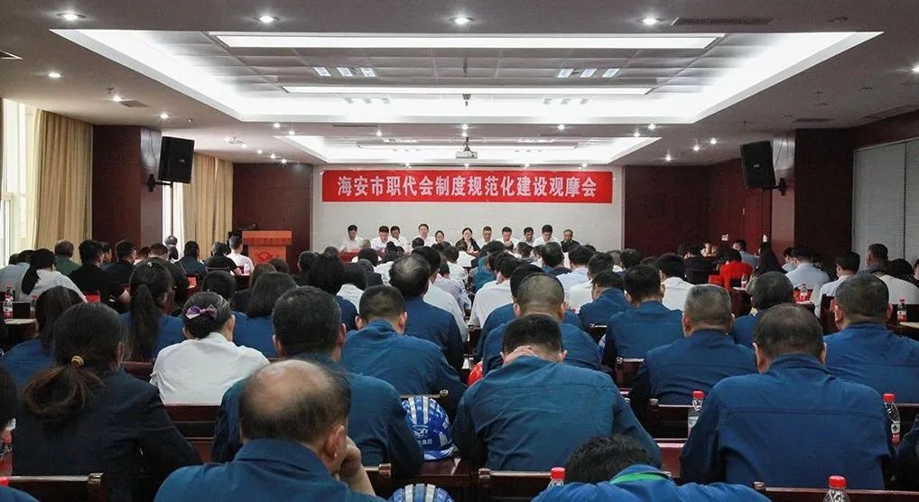 鵬飛集團職代會制度建設規范,以職代會為基本形式的基層民主管理制度體系健全程度名列前茅。借此契機,海安市總工會在鵬飛集團召開海安市職代會制度規范化建設觀摩會,來自全市40余名基層工會干部參加觀摩。