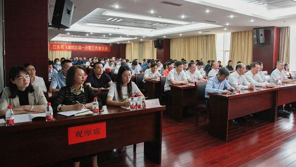 5月16日,江蘇鵬飛集團股份有限公司工會召開五屆一次會員代表大會,海安市總工會黨組書記、主席楊海燕,大公鎮黨委書記金山存,黨委副書記、工會主席閻超,鵬飛集團黨委書記、董事長王家安,副總經理施鵬宇出席會議。