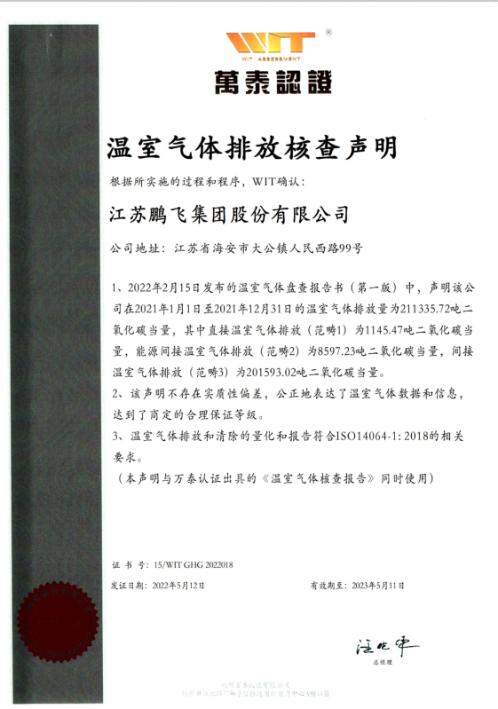 江蘇鵬飛集團(tuán)股份有限公司一直以來(lái)堅(jiān)持綠色采購(gòu),綠色生產(chǎn),綠色物流的原則,積極響應(yīng)并參與相關(guān)方(政府、客戶(hù)等)節(jié)能降排、碳排放報(bào)告活動(dòng)。