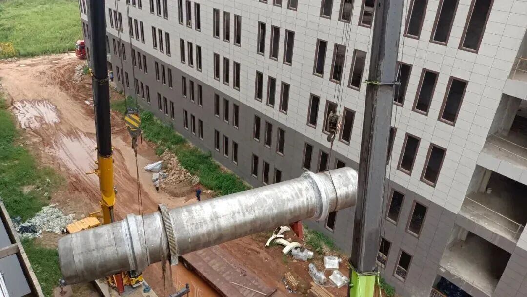 近日,中新開維綠色食品產業園項目迎來重大進展—隨著三臺總重達108噸的“巨無霸”回轉窯炒菜鍋在兩臺吊車精準牽引下緩緩上樓就位,中新開維綠色食品產業園15