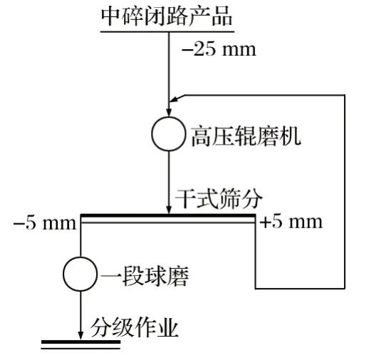 /d 的目標。首先需確定何種高壓輥磨機工藝適合本項目,其次對關(guān)鍵設(shè)備一段球磨機進行選型計算和分析。