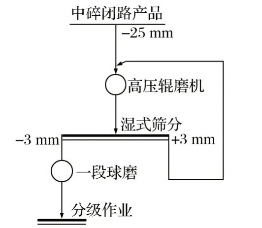 /d 生產(chǎn)系統(tǒng)設(shè)備陳舊,且設(shè)備規(guī)格小、數(shù)量多,管理和維護工作量大,因此擬對碎磨流程進行技術(shù)升級改造。通過初步調(diào)研和分析,擬采用高壓輥磨機進行碎磨系統(tǒng)改造,實現(xiàn)單系列生產(chǎn)能力達到 10 000 t