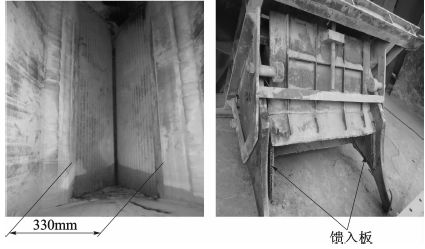 圖2 輥壓機(jī)喂料裝置通過口及饋入板