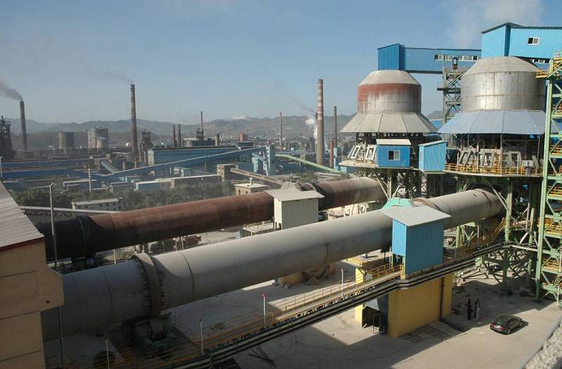 (2)回轉窯:回轉窯由筒體、支撐裝置、變速傳動裝置、擋輪裝置、窯尾及窯頭密封、窯頭罩組成。窯體與水平呈3.5%傾斜放置。配有兩套支撐裝置,其托輪軸承為水冷式油勺潤滑滑動軸承,并有球面瓦能自動調心。在靠近大齒圈處還配有液壓擋輪。采用變頻調速電機驅動窯體,并設有附助傳動驅動窯體。窯頭窯尾采用彈簧片式密封裝置。采用變頻調速電機驅動窯體結合預熱器分解率,有效控制煅燒時間及溫度,達到生燒和過燒指標要求。